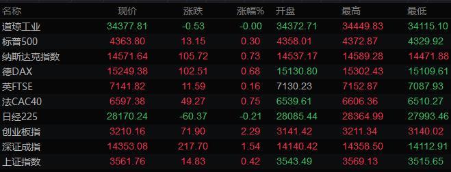 美股收盘情况:标普500指数上涨0.3%,报4363.8点;道琼斯工业平均指数基本持平,报34377.81点;纳斯达克综合指数上涨0.7%,报14571.63点;纳斯达克100指数上涨0.8%,报14774.6点;罗素2000指数上涨0.3%,报2241.968点。
