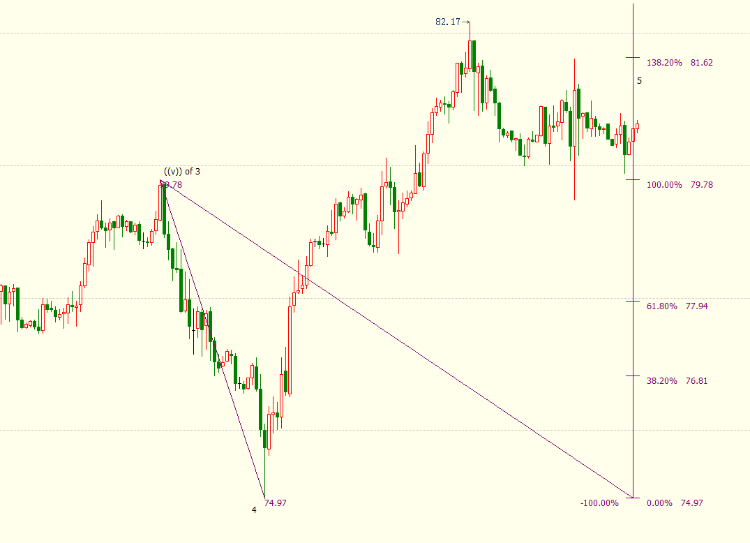 日线图上看,美油处于自61.74美元开启的上行((3))浪,上方阻力看向38.2%目标位88.66美元。小时图上看,油价处于自74.97美元开启的上行5浪,上方阻力看向161.8%目标位82.75美元。5浪是自61.74美元开启的上行(1)浪的子浪。(1)浪是((3))浪的子浪。