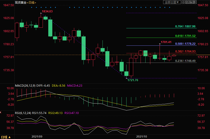 上方初步阻力位关注38.2%回撤位1764.93,进一步关注50%回撤位1778.22以及61.8%回撤位1791.52。