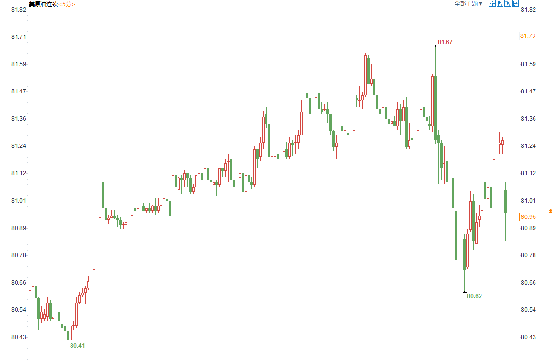 周三(10月8日)纽约时段盘中,北京时间23:00,美国EIA公布的数据显示,截至10月8日当周美国除却战略储备的商业原油库存增幅远超预期,精炼油库存降幅不及预期,汽油库存降幅超预期。EIA数据公布后美国原油价格短线小幅回落0.2美元。