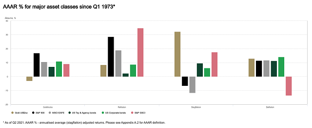 图4:1973年以来每个周期阶段的主要资产回报率:在滞胀中,黄金是明显的赢家