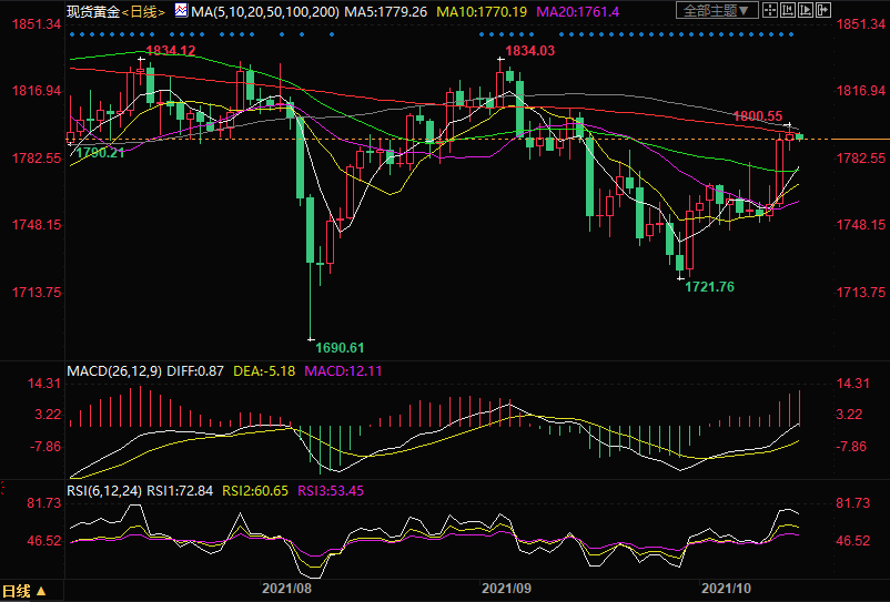 10月15日黄金交易策略:金价承压于1800阻力位,激进者轻仓做空