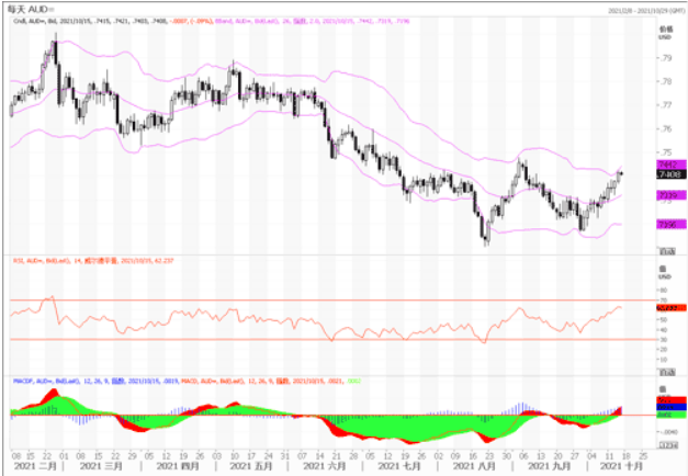 澳元/美元继触及愈一个月高位 0.7426 后交投于 0.7410 附近。澳洲经济数据不及市场预期,但股市上涨且金价走强提振澳元。周四当天早间公布的澳大利亚数据普遍疲弱。10 月消费者通胀预期为 3.6%,低于前值 4.4%,同时低于期值 3.8%。此外,澳大利亚发布报告称 9 月失去 13.8 万个就业岗位,弱于预期。失业率降至 4.6%,好于预期,但就业参与率收缩至 64.5%。澳洲疲弱的经济数据,说明支撑澳元走升的基础因素并不那么牢靠。澳元/美元短线技术前景上看,日图显示澳元/美元维持看涨,汇价维持突破 20 移动均线,技术指标朝上,处在正区。澳元/美元目前汇合于持续看跌的100均线。若澳元/美元突破该水平,汇价就有望触及100%回档位,涨至9月高点 0.7477。然而短线小时图上,技术指标均进入超买状态,日内要小心防范周末获利回调的风险。