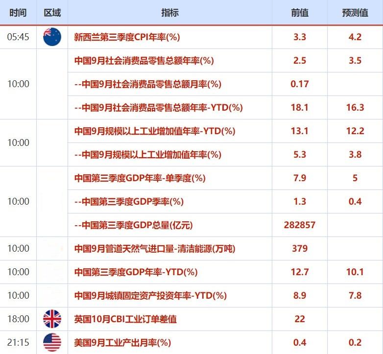 周一(10月18日)关键词:新西兰第三季度CPI、中国第三季度GDP