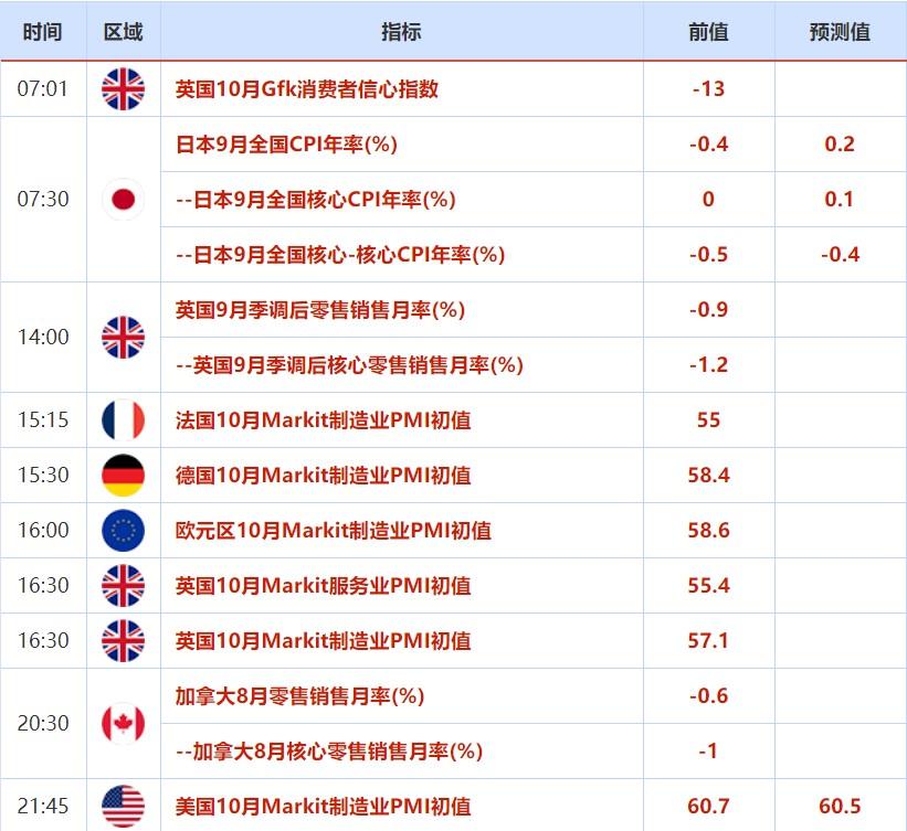 周五(10月22日)关键词:欧元区PMI初值、美国PMI初值