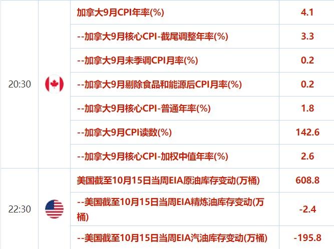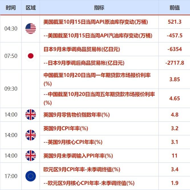 周三(10月20日)关键词:日本9月未季调商品贸易帐、英国9月CPI、美国EIA原油库存变动