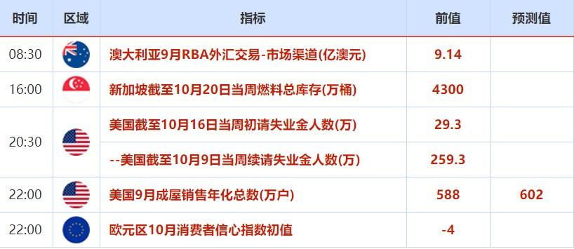 周四(10月21日)关键词:美国当周初请失业金人数、欧元区10月消费者信心指数