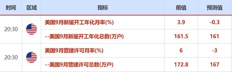 周二(10月19日)关键词:美国9月新屋开工、美国9月营建许可