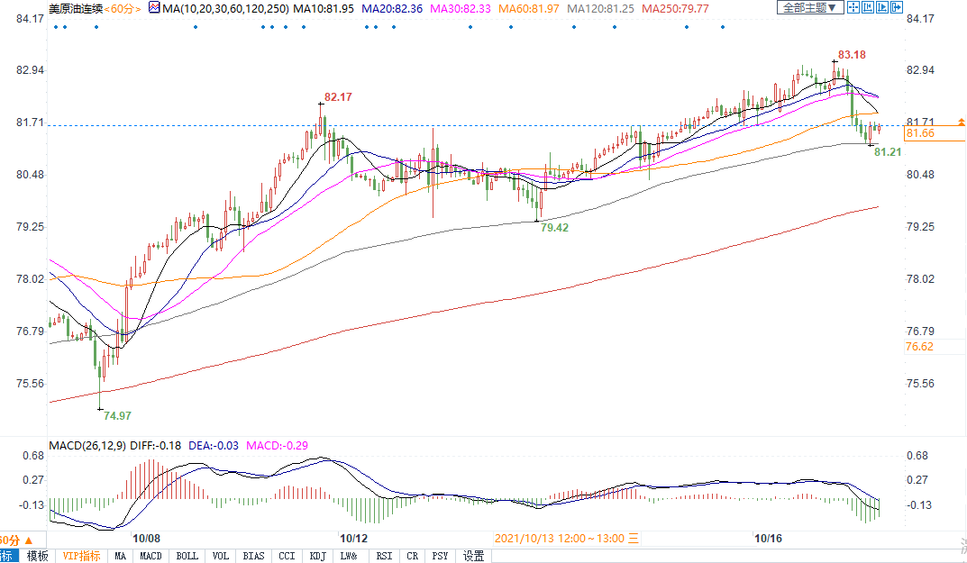 周一(10月18日)美油期货上涨0.16美元,涨幅为0.19%,结算价报82.44美元/桶,稍早触及2014年10月以来最高83.87美元。布油下跌0.53美元,跌幅为0.62%,结算价报84.33美元/桶,稍早触及2018年10月以来最高86.04美元。在交易员评估持续的天然气危机之际,美国工业数据显示出疲软迹象,令市场对需求的乐观预期降温,油价开始快速回落。