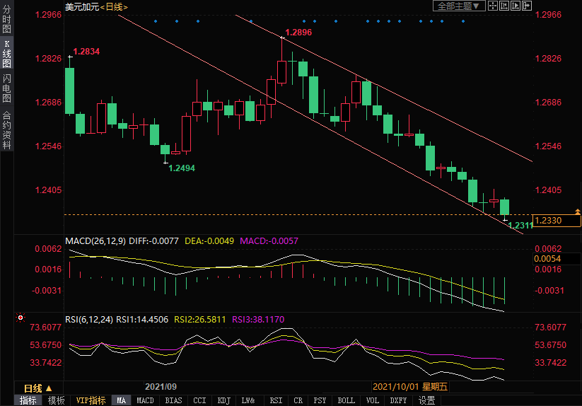 周二(10月19日)美元兑加元在日内大幅走低,创下逾三个月低点,主要受美元大跌以及原油上涨的双重压力,下方重点关注1.2300心理关口的支撑。