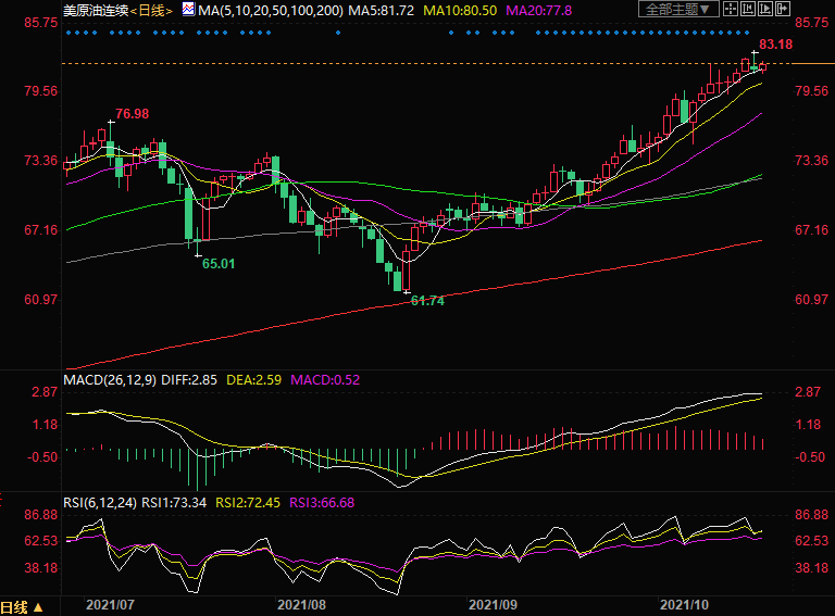 不过技术面来看,RSI有超买信号,对油价可能造成一定的拖累,MACD红柱不断缩短,显示上涨动能也略有不足,投资者需要警惕MACD结成死叉的可能。