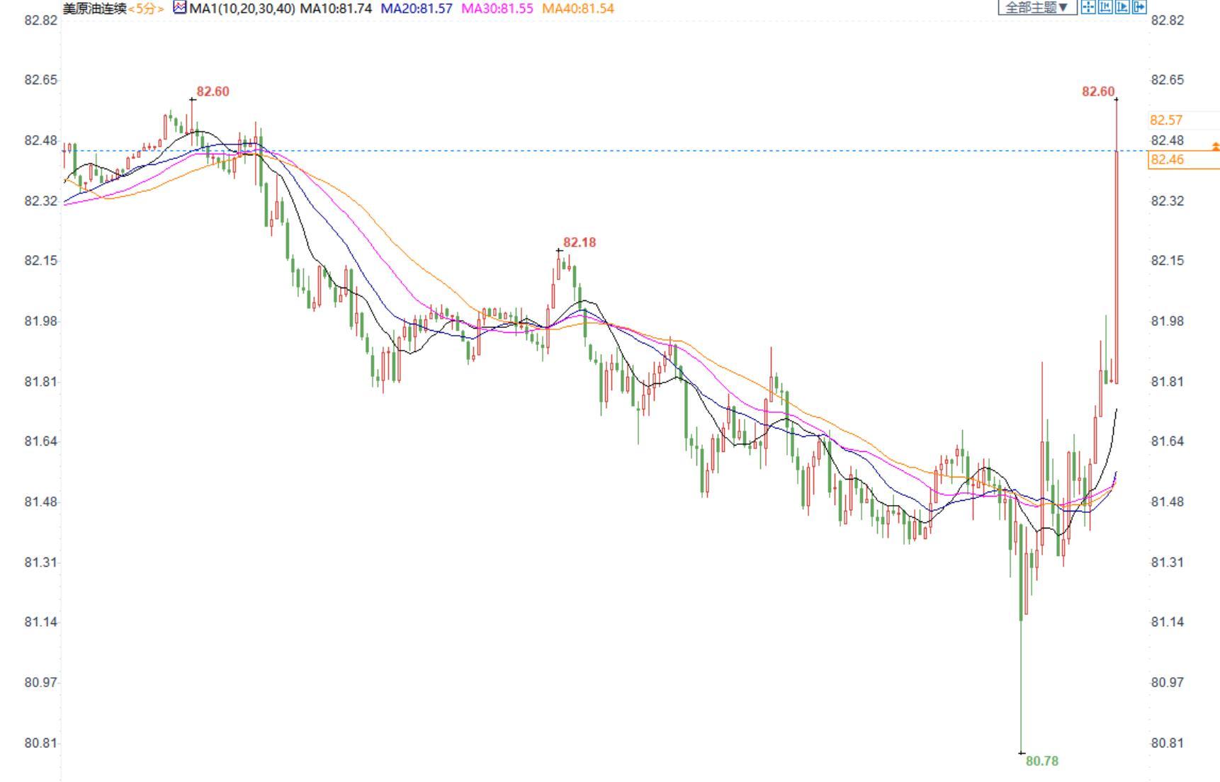 美国原油价格5分钟图显示