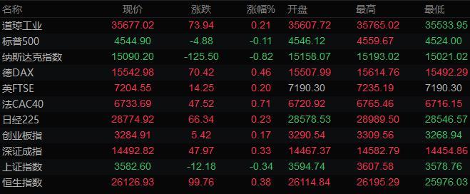 美股收盘情况:标普500指数下跌0.1%,报4544.9点;道琼斯工业平均指数上涨0.2%,报35677.02点;纳斯达克综合指数下跌0.8%,报15090.2点;纳斯达克100指数下跌0.9%,报15355.07点;罗素2000指数下跌0.2%,报2291.266点。