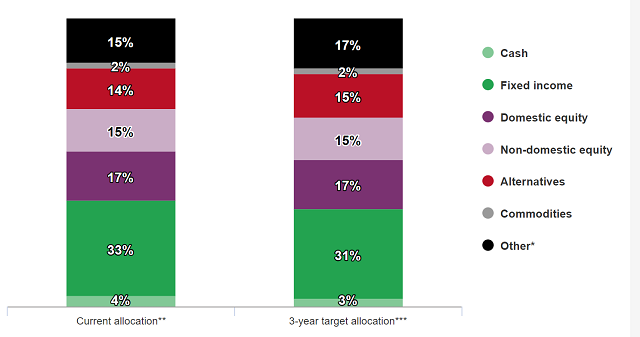 图1:全球机构投资者在其投资组合中增加了更多的“替代资产”和“其他资产”
