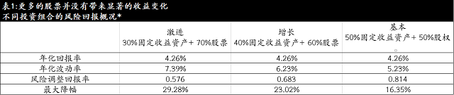 假设投资组合中,增加股票的投资组合及加入黄金的投资组合在过去20年的风险调整回报率