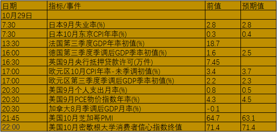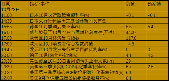 周四关键词:日本央行决议、欧洲央行决议、美国三季度GDP、初请、三季度核心PCE