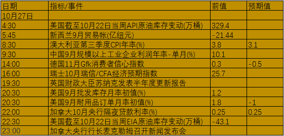 10月25日-31日当周重磅数据及事件前瞻:三大央行公布利率决议,美联储入噤声期