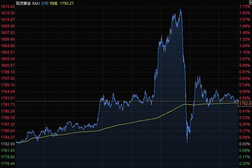 上周五现货黄金冲高回落,收报1792.65美元/盎司,稍早一度大涨1.73%触及1813.82美元/盎司,为9月7日以来最高水平;此前美联储主席鲍威尔表示,他预计明年通胀将有所缓解,且美联储势将开始缩减刺激计划。