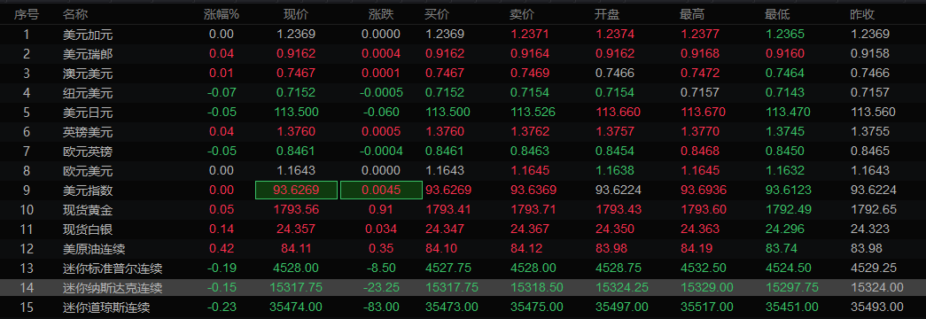 全球主要市场行情一览