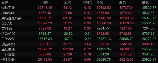 美股收盘情况:标普500指数上涨0.5%,报4566.48点;道琼斯工业平均指数上涨0.2%,报35741.15点;纳斯达克综合指数上涨0.9%,报15226.71点;纳斯达克100指数上涨1%,报15514.19点;罗素2000指数上涨0.9%,报2311.659点。