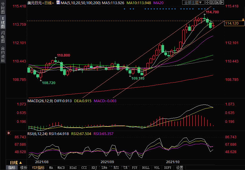 周一(10月26日)在北美市场前,美元兑日元维持其积极基调,并成功突破114.00关口。