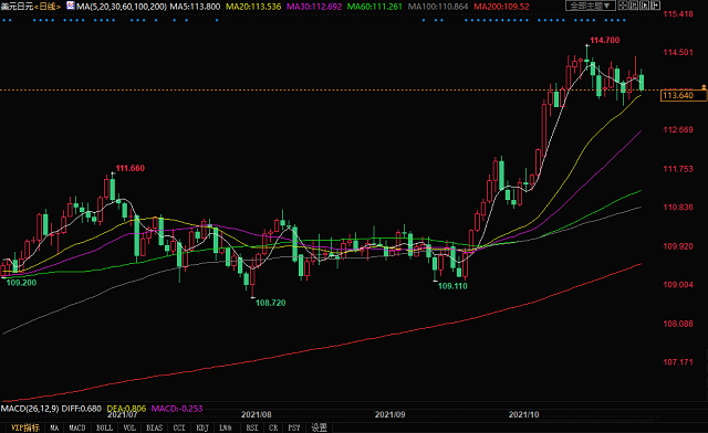 北京时间11月2日15:20,美元兑日元报113.64/66。