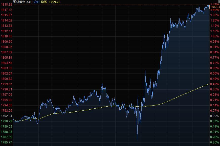 现货黄金周五涨逾1%,创9月7日以来新高至1818.38美元/盎司,主要央行本周对利率的鸽派态度提振了对避险黄金的需求。本周,央行的声明帮助黄金扭转了稍早的跌势,周线上约涨1.96%,创下8月底以来的最大单周涨幅。