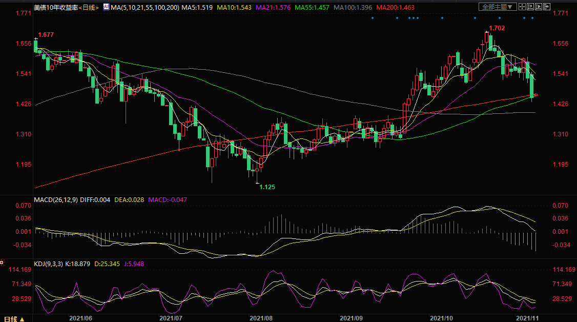 【10年期美债收益率跌破重要移动均线,市场预期美联储会更晚升息】