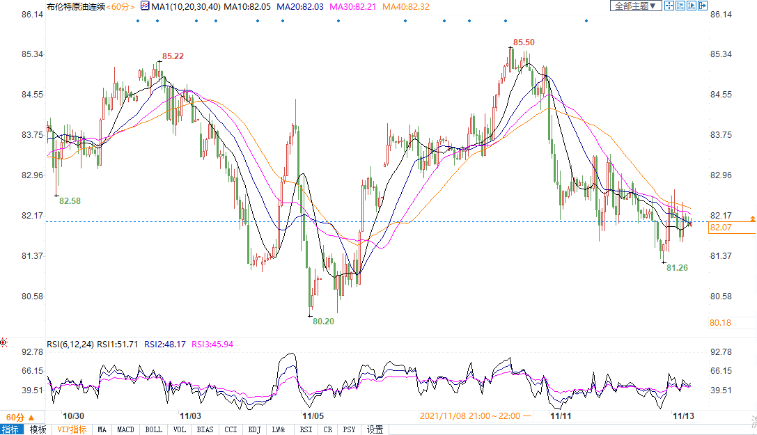 周五(11月12日)美油期货下跌0.8美元,跌幅为1%,结算价报80.79美元/桶;布油下跌0.70美元,跌幅为0.8%,报收82.17美元/桶,两大指标合约均连续第三周下跌。投资者仍在猜测拜登是否会采取行动遏制引发美国通胀飙升的油价,同时美元走强也令油价承压。