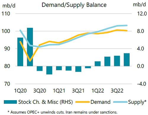 三菱(Mitsubishi Corp.)高级风险经理Tony Nunan表示:“以目前的油价,供应将会增加,但这可能需要6个月的时间,而且库存已经降到了如此低的水平。我们没有安全边际。我们的库存水平非常低,如果冬天非常寒冷,而OPEC+仍在增加供应方面行动迟缓,这可能会推高油价。”