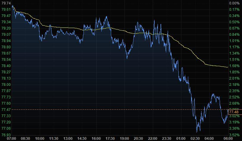 油价周三急挫,美油一度大跌3.5%,创11月7日以来新低至76.93美元/桶,布油结算价跌至10月初以来的最低水平,此前石油输出国组织(OPEC)和国际能源署(IEA)警告称,供应即将过剩,欧洲新冠病例的增加加剧了需求复苏的下行风险。