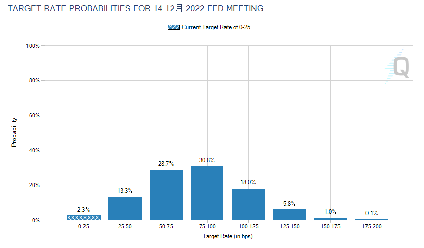 货币市场目前预计,美联储很可能在2022年6月开始加息。芝加哥商业交易所(CME)“联储观察”数据显示,美联储在2022年6月至少加息25个基点的概率为69%,2022年年底前累计至少加息75个基点的概率超过50%。