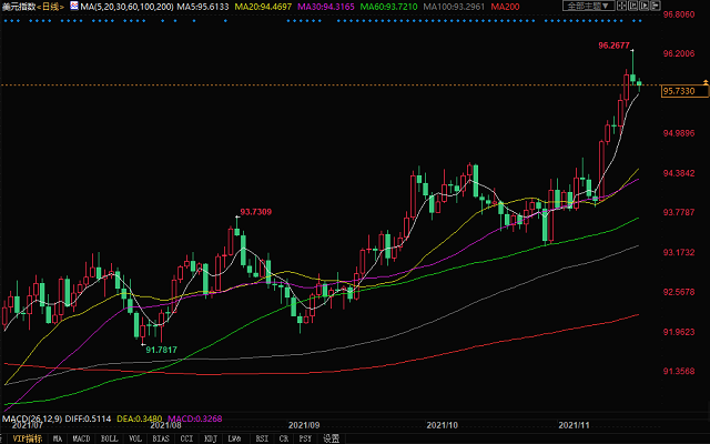 11月18日纽市盘中,美元指数延续前一交易日跌幅小幅下行,虽然日内初请数据略高于预期,但高企的通胀令市场对美联储提前加息的预期热度不减,限制了美元跌幅。