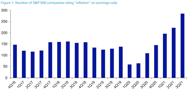 (德意志银行发现,第三季度财报电话会议上提及通胀的频率大增,反映出美国经济面临的压力)