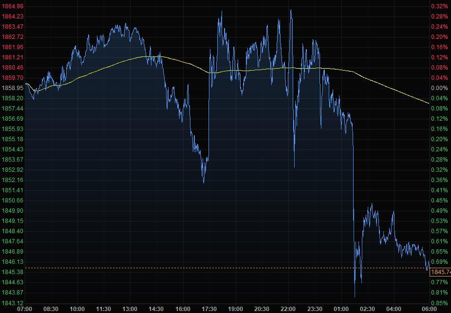 周五金价下跌,受美元走强拖累,现货黄金一度跌0.85%,创11月11日以来新低至1843.12美元/盎司;此前美联储官员表示可能需要考虑加快购债减码步伐,因经济增长强劲、通货膨胀上升。