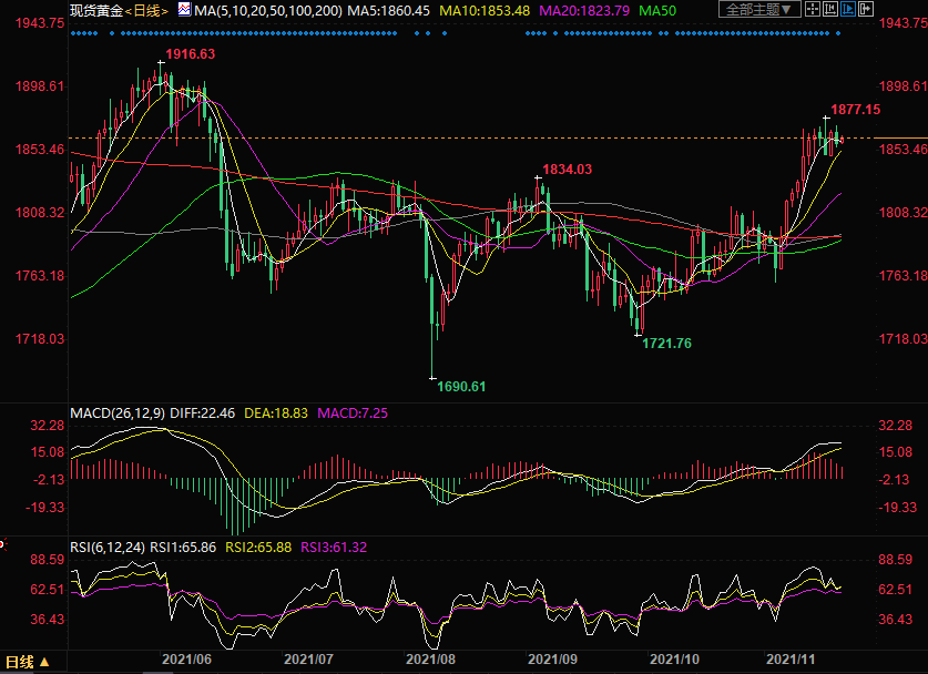 上方初步阻力在11月16日高位1877.15,进一步关注5月19日高位1890.10及1900.00心理关口。