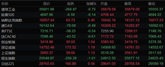 全球主要市场行情一览