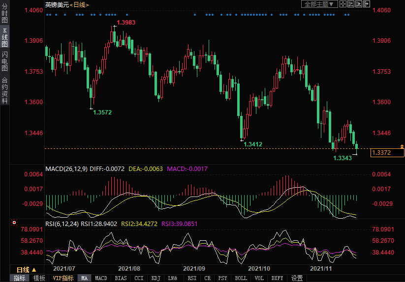 上方阻力位关注1.3412、1.3464、1.3514,下方支撑位1.3343、1.3300、1.3267。