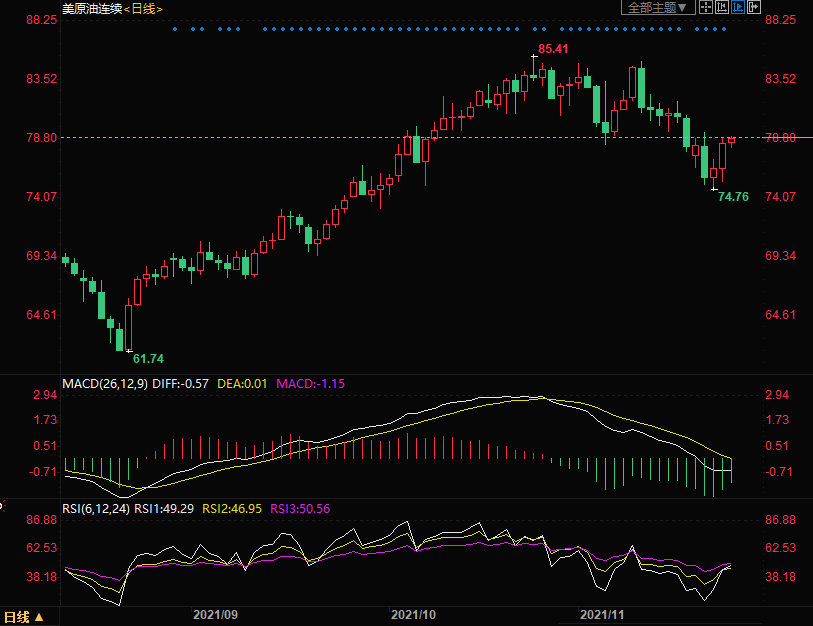 下方初步支撑关注11月4日低位78.25,进一步关注9月28日高位76.67以及10月7日低位74.96。