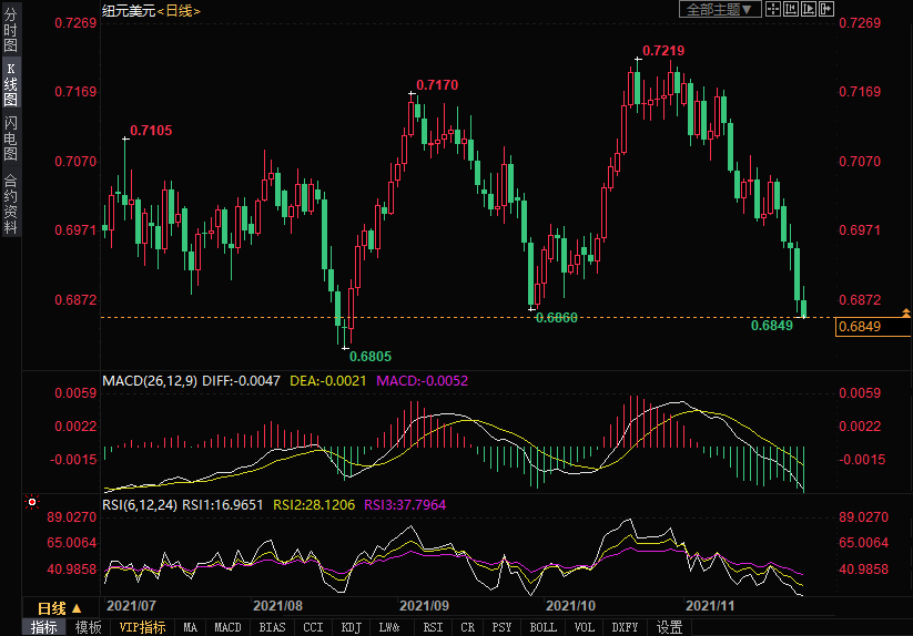 周四(11月25日)纽元兑美元回吐盘中反弹涨幅,在欧洲时段跌至三个月新低约0.6850附近。