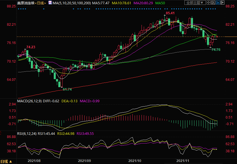 下方关注5日均线77.48,进一步关注11月18日低位76.44以及11月22日低位74.76。