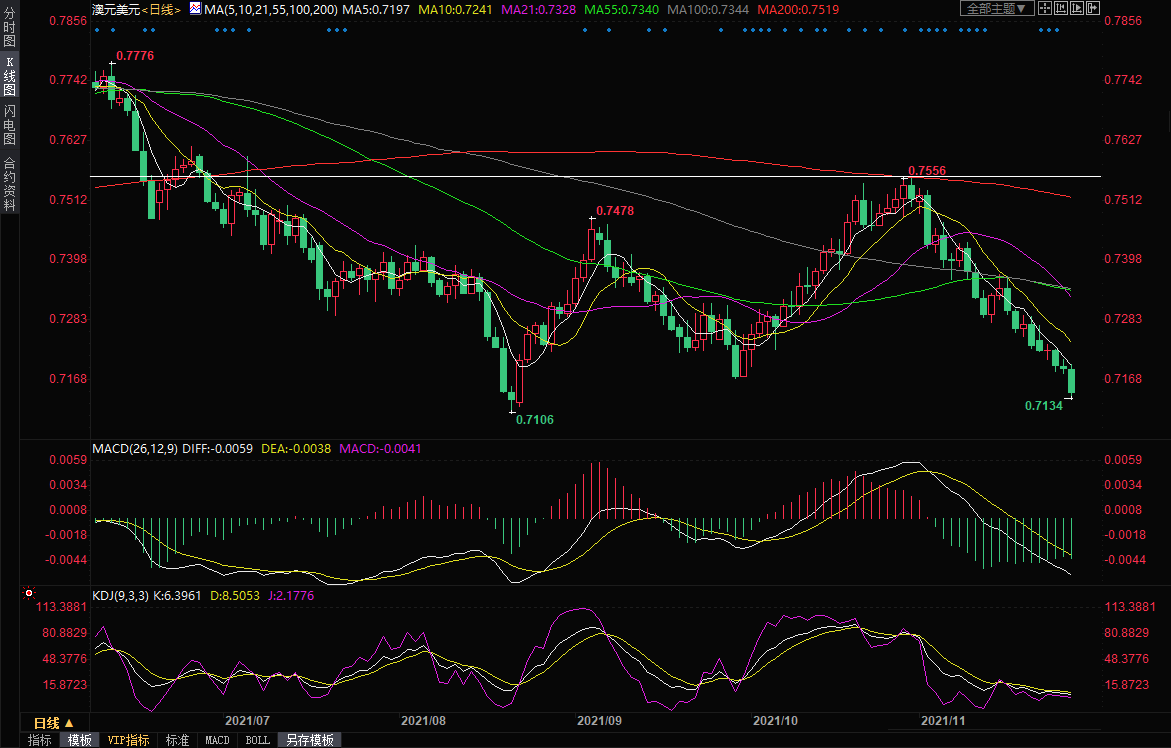 商品货币普遍受到拖累,澳元兑美元一度下跌0.78%,创近三个月新低至0.7134;纽元兑美元也创下三个月新低,最低触及0.6816,跌幅约0.5%。