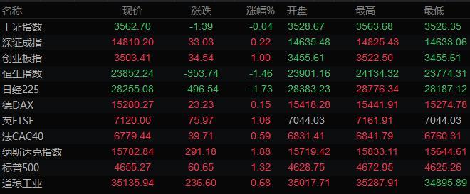美股收盘情况:标普500指数上涨1.3%,报4655.27点;道琼斯工业平均指数上涨0.7%,报35135.94点;纳斯达克综合指数上涨1.9%,报15782.83点;纳斯达克100指数上涨2.3%,报16399.24点;罗素2000指数下跌0.2%,报2241.976点。