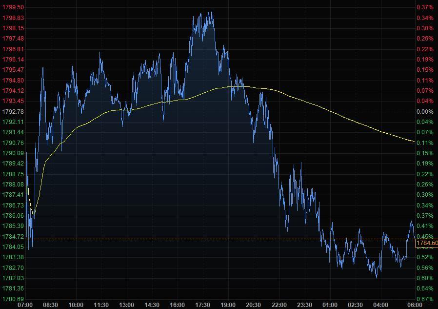 金价周一有所回落,现货黄金下跌0.46%,尾盘报1784.60美元/盎司,恢复了此前一周的普遍下跌走势,因美元走强,风险情绪回升,市场在权衡Omicron变种病毒对经济的影响会有多严重。