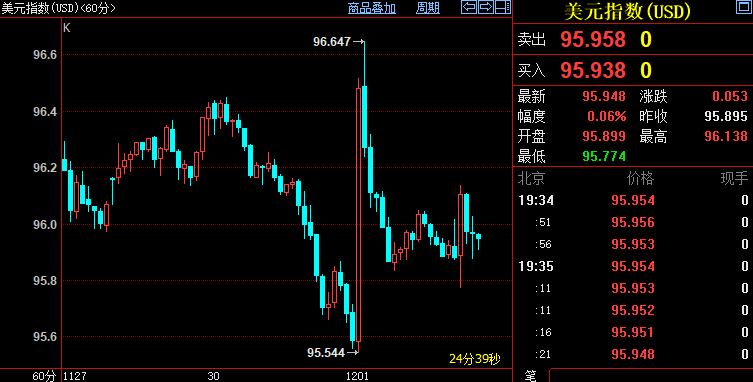 北京时间19:33,现货黄金上涨0.63%至1785.76美元/盎司;COMEX期金主力合约上涨0.59%至1787.1美元/盎司;美元指数上涨0.09%至95.962。
