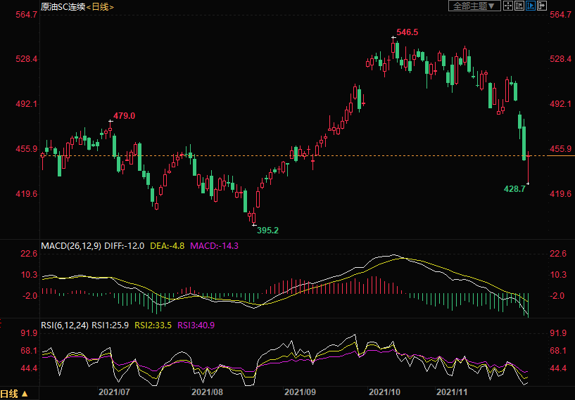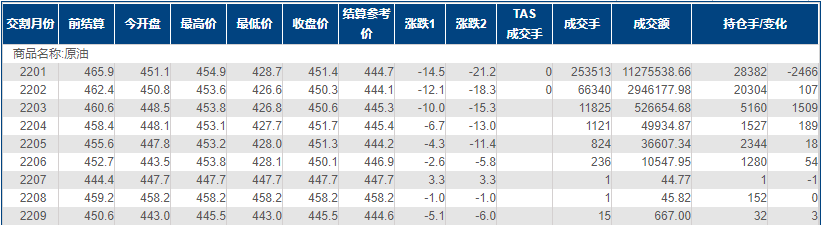 上海原油价格大跌3.11%,触及三个月新低,主力合约2201终盘收于451.4元/桶,跌14.5元/桶。