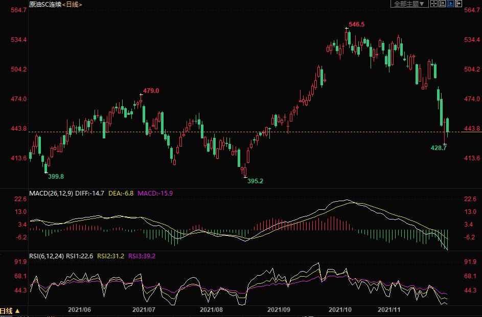 周四(12月2日)上海原油价格下跌0.81%,主力合约2201终盘收于441.1元/桶,跌3.6元/桶,市场担心Omicron变种可能会在全球供应增加之际削减石油需求。