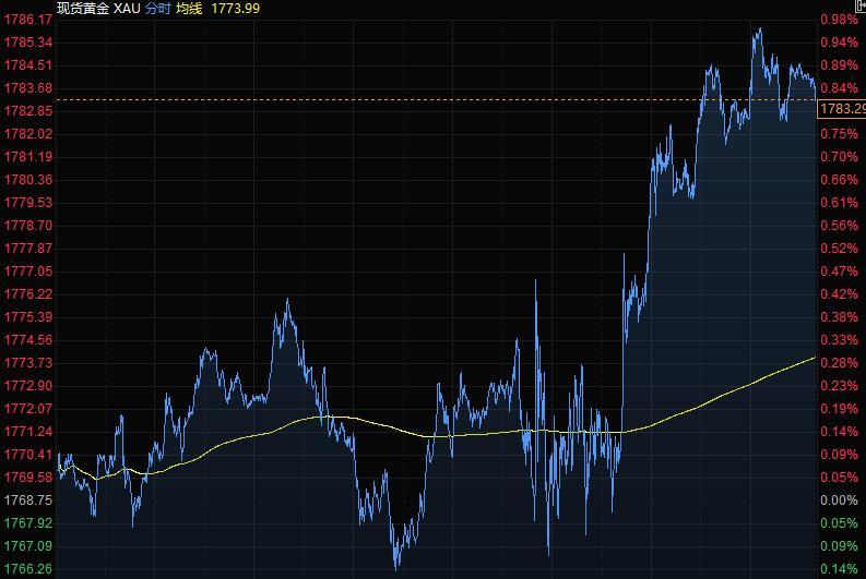 现货黄金周五一度涨近1%至1786.17美元/盎司,Omicron新冠病毒变种引发的不确定性以及美债收益率下降提高了这种避险金属的吸引力。