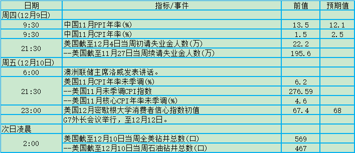 周四(12月9日)、周五(12月10日)关键词:中国CPI、美国初请、美国CPI、美国消费者信心