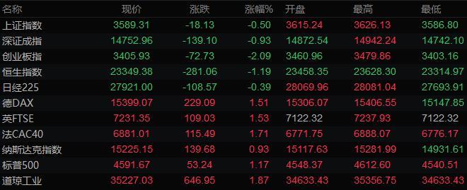 全球主要市场行情一览